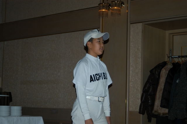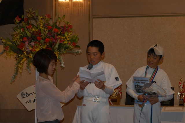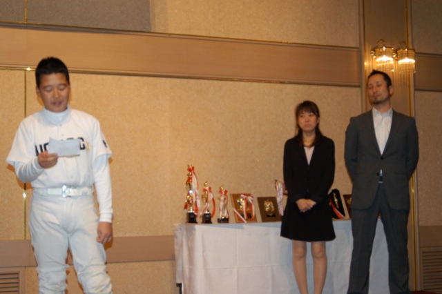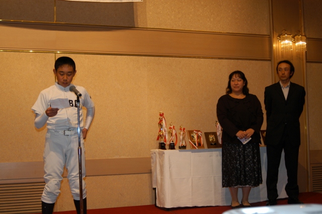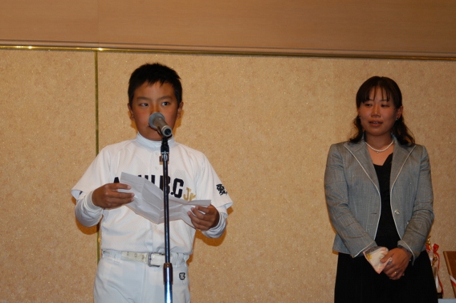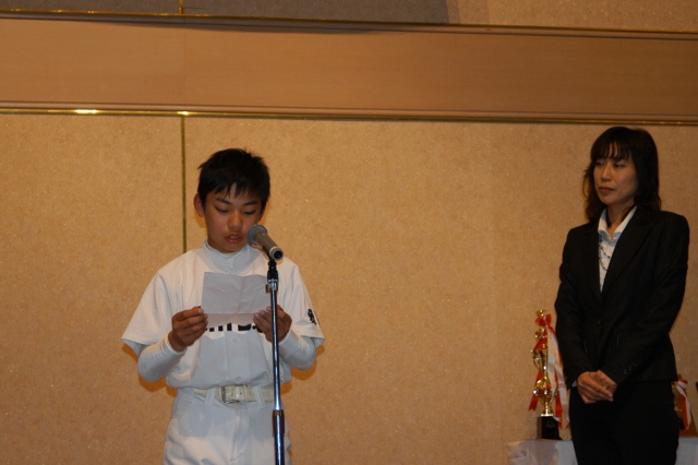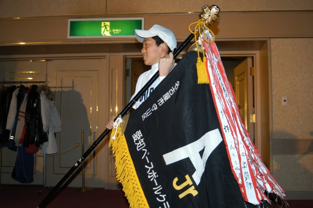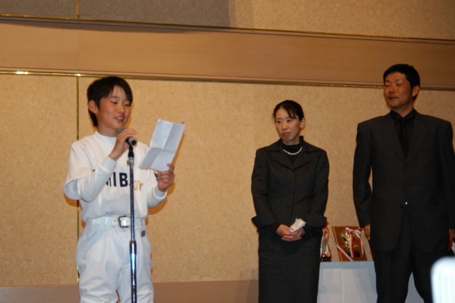 卒団生代表金子主将の答辞 団旗の引渡し 卒団生から在団生へ記念品授与