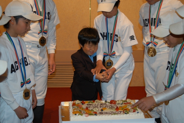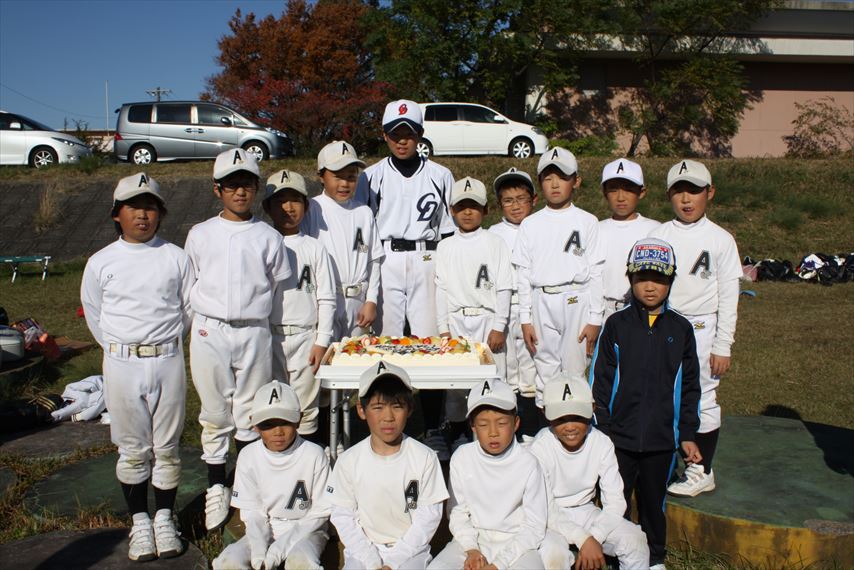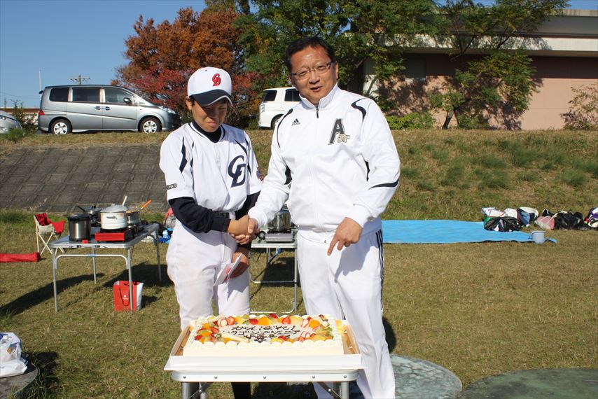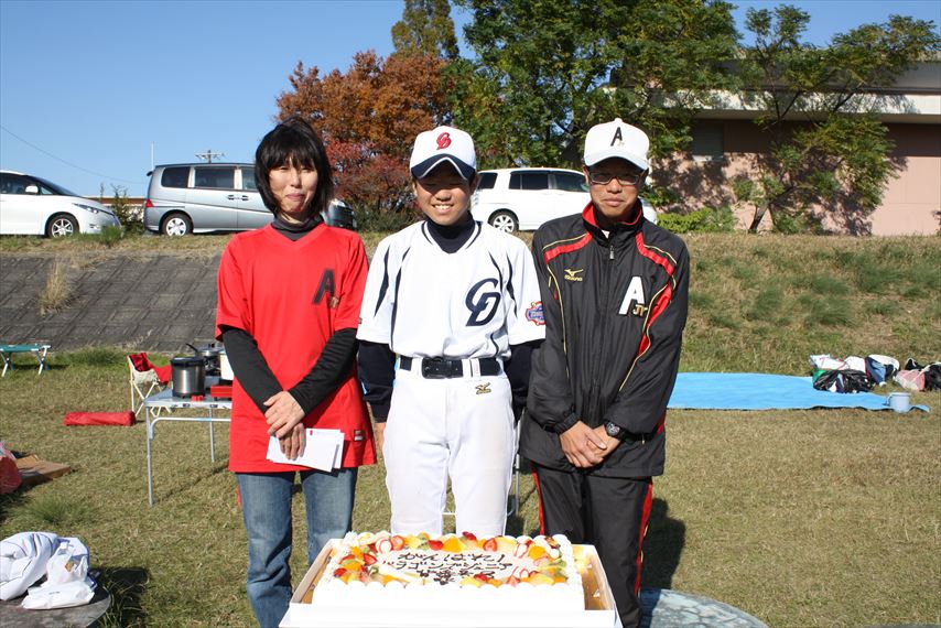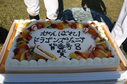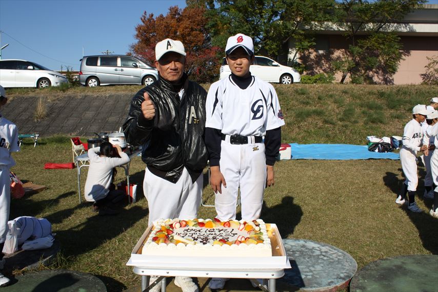 卒団父母謝辞代表林さん! 父母と記念撮影 お世話になった方々と! 卒団記念のケーキ!!!