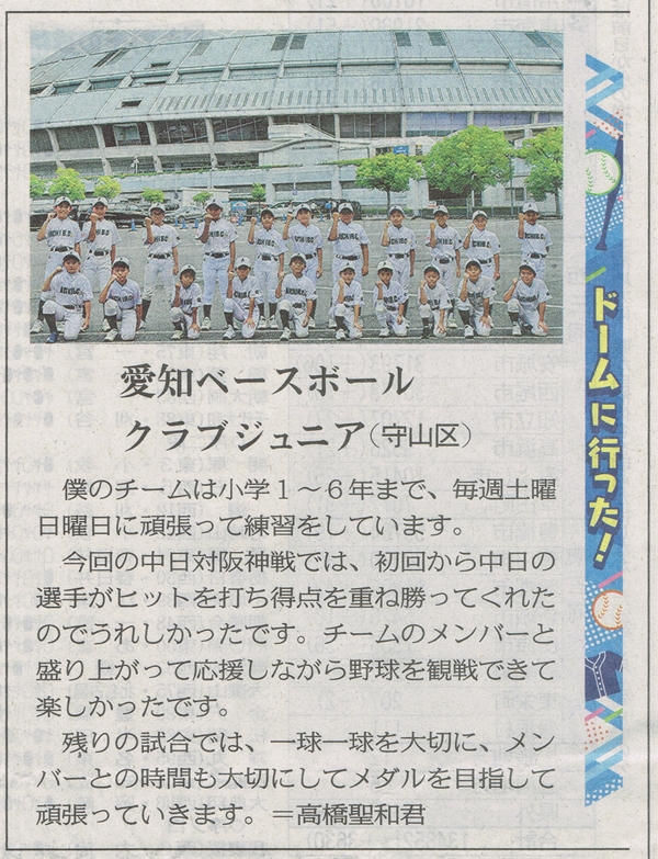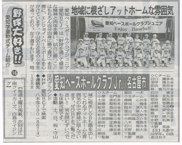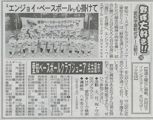 愛知フラッシュジュニアは、当クラブ発足時から大変お世話になっている名古屋少年軟式野球友好会の横山賢一さん率いるクラブチームです。
